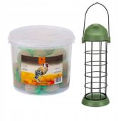 Zestaw ten został zaprojektowany z myślą o wygodzie użytkownika. Karmnik wyposażony jest w pokrywę na zawiasach i zdejmowane dno, ułatwiające napełnianie i czyszczenie. Jego wymiary pozwalają na swobodne umieszczenie trzech kul tłuszczowych, zapewniając ptakom stały dostęp do pokarmu.