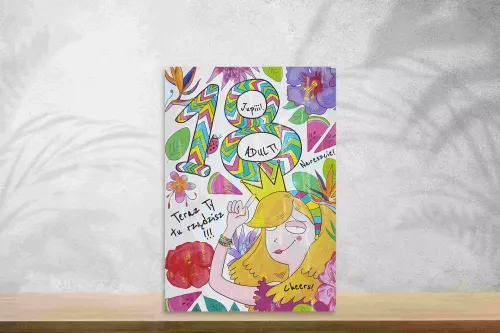 Karnet w formacie A5. Wydrukowany na wysokiej jakości papierze. Karnet uszlachetniony lakierem soczewkowym. W zestawie kolorowa koperta.