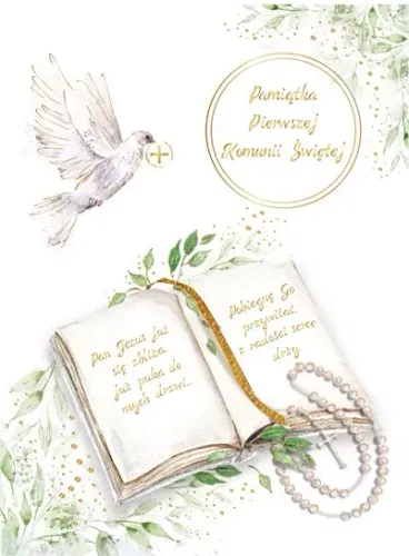 Karnet w formacie B6, złocony i tłoczony, teksy życzeń w środku. Wydrukowany na wysokiej jakości papierze. Koperta w zestawie.