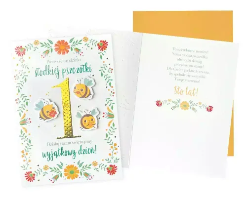 Kartka B6 z ozdobnej serii Dream Cards na 1 urodziny - nieduża, ale robi wrażenie dzięki atrakcyjnej kolorystyce i ciekawym zdobieniom.