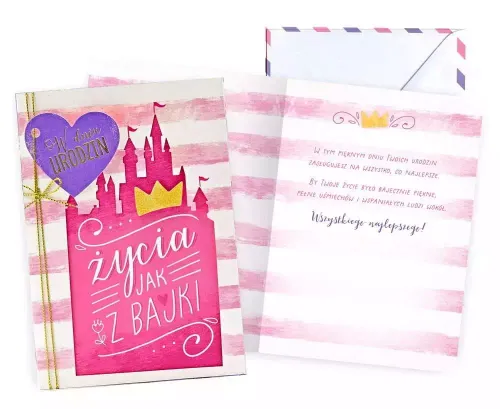Kartka B6 z ozdobnej serii Dream Cards na urodziny - nieduża, ale robi wrażenie dzięki atrakcyjnej kolorystyce i ciekawym zdobieniom. To idealny wybór łączący przyjazną cenę z jakością. Cechy szczególne: wielkość: B6, 16.6 x 11.7 cm po złożeniu, koperta: w zestawie, kolorowa, zdobienia: kolorowe, różnorodne, bogate (w zależności od wzoru: przyklejane dekoracje, elementy biżuteryjne, odstawniki, brokat metaliczne folie, tłoczenia itp.), okazja: urodziny
