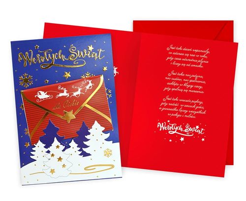 Kartka B6 z ozdobnej serii Dream Cards na Boże Narodzenie - nieduża, ale robi wrażenie dzięki atrakcyjnej kolorystyce i ciekawym zdobieniom.