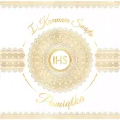 Składany z trzech stron kwadratowy karnet o wymiarach 15 x 15 cm z wyciętym elementem na froncie. Złocony i tłoczony, teksy życzeń w środku. Wydrukowany na wysokiej jakości papierze. W zestawie koperta.