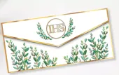 Koperta wydrukowana na wysokiej jakości papierze formatu 25.7 x 11.9 cm. Koperta uszlachetniona złotem i tłoczona. W środku kartka z tekstem życzeń uszlachetniona złotem. W zestawie biała koperta.