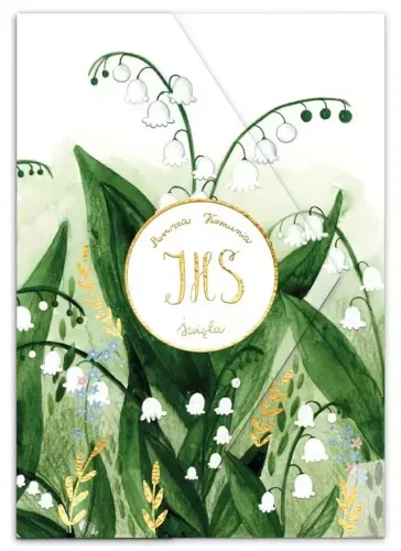 Karnet z kieszonką na pieniądze w formacie A5, składany z trzech. Złocony i tłoczony, teksy życzeń w środku. Wydrukowany na wysokiej jakości papierze. W zestawie koperta.