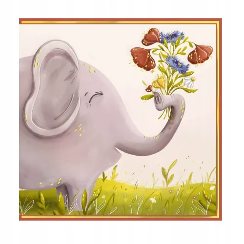 Karnet w formacie 15 x 15 cm. Wydrukowany na wysokiej jakości papierze. Karnet z tłoczonymi wzorami na całej powierzchni oraz złoceniem. W zestawie kolorowa koperta.