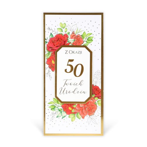 Kartka z przestrzenną złoconą etykietą, na której wytłoczona jest cyfra.