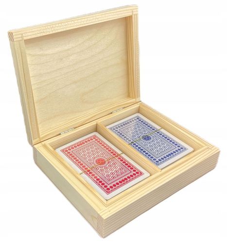 ✅ Nazwa: Karty do gry 2 talie w drewnianym pudełku
