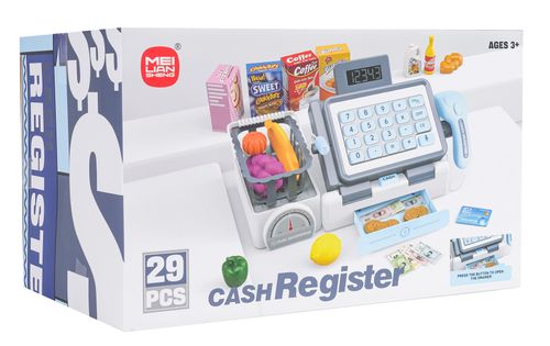 Funkcje: - dla dzieci od trzeciego roku życia, - zestaw wykonany z najlepszej jakości materiałów w żywych kolorach, - aż 29 elementów zestawu, - działający kalkulator z odgłosami, - skaner z odgłosem i mrugającym światełkiem, - waga (atrapa), - działający mikrofon, - otwierana szufladka na pieniądze, - zestaw idealny do odgrywania ról. |