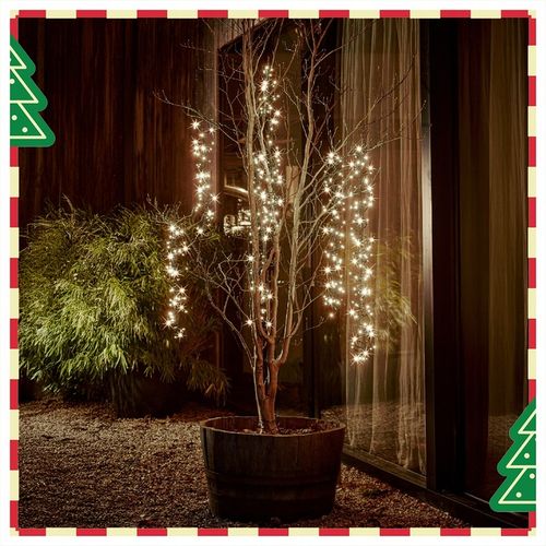 Ta wysokiej jakości kaskada świetlna LED o długości 200 cm i wysokości do 100 cm zachwyca eleganckim designem i precyzyjnym wykonaniem. Wyposażona w aż 480 diod LED w ciepłym odcieniu soft gold, rozświetla przestrzeń subtelnym, trwałym światłem, które idealnie nadaje się do tworzenia niepowtarzalnej atmosfery podczas świąt.