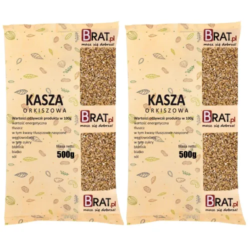 Opakowanie zawiera 1kg (2x500g) kg kaszy orkiszowej.