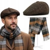 Ten wysokiej jakości komplet męski Pako Jeans, składający się z kaszkietu model 116-7 i szala model W130, wyróżnia się nie tylko eleganckim krojem i precyzyjnym wykończeniem, ale także wyjątkową dbałością o detale. Kaszkiet w odcieniach brązu o obwodzie 56-57 cm idealnie trzyma fason, a szal w kratkę pomarańczowo-szaro-czarną o wymiarach 30 cm x 180 cm z modnymi frędzlami zapewnia pełną ochronę przed chłodem, łącząc klasykę z codzienną wygodą.