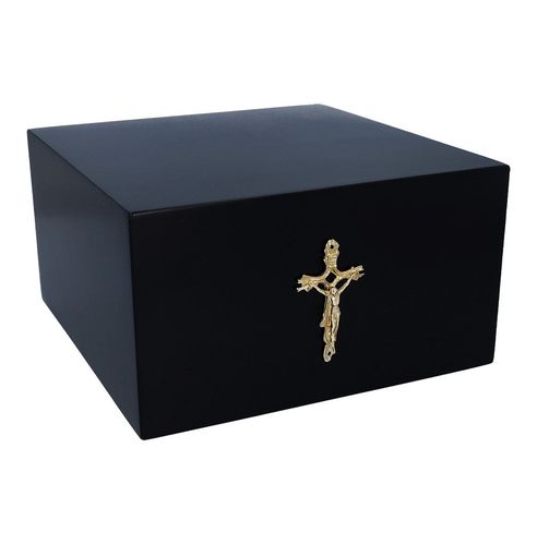 Drewniana urna na prochy czarna z krzyżem