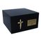Pięknie wykonana urna pogrzebowa, emanująca prostotą i elegancją. Ta czarna drewniana urna, ozdobiona delikatnym krzyżem, służy jako godny hołd dla ukochanej osoby. Zaprojektowana z myślą o trwałości, ta katolicka urna posiada szlachetne wykończenie, dzięki czemu przetrwa próbę czasu.