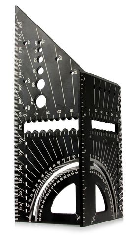 Aluminiowy kątownik japoński przeznaczony do wykonywania pomiarów i prezyzyjnego przenoszenie ich na materiały trójwymiarowe.
