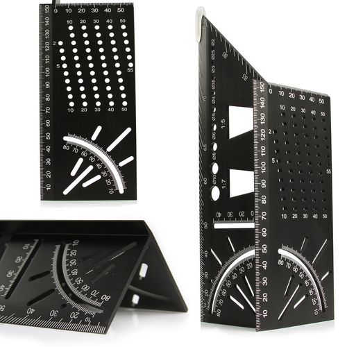 Wielozadaniowy trójwymiarowy Aluminiowy kątownik Idealnie sprawdzi się do wykonywania pomiarów i wyznaczania kątów na wszelkich powierzchniach. Umożliwia pracę z materiałami 3D takimi jak belki drewna, rury.