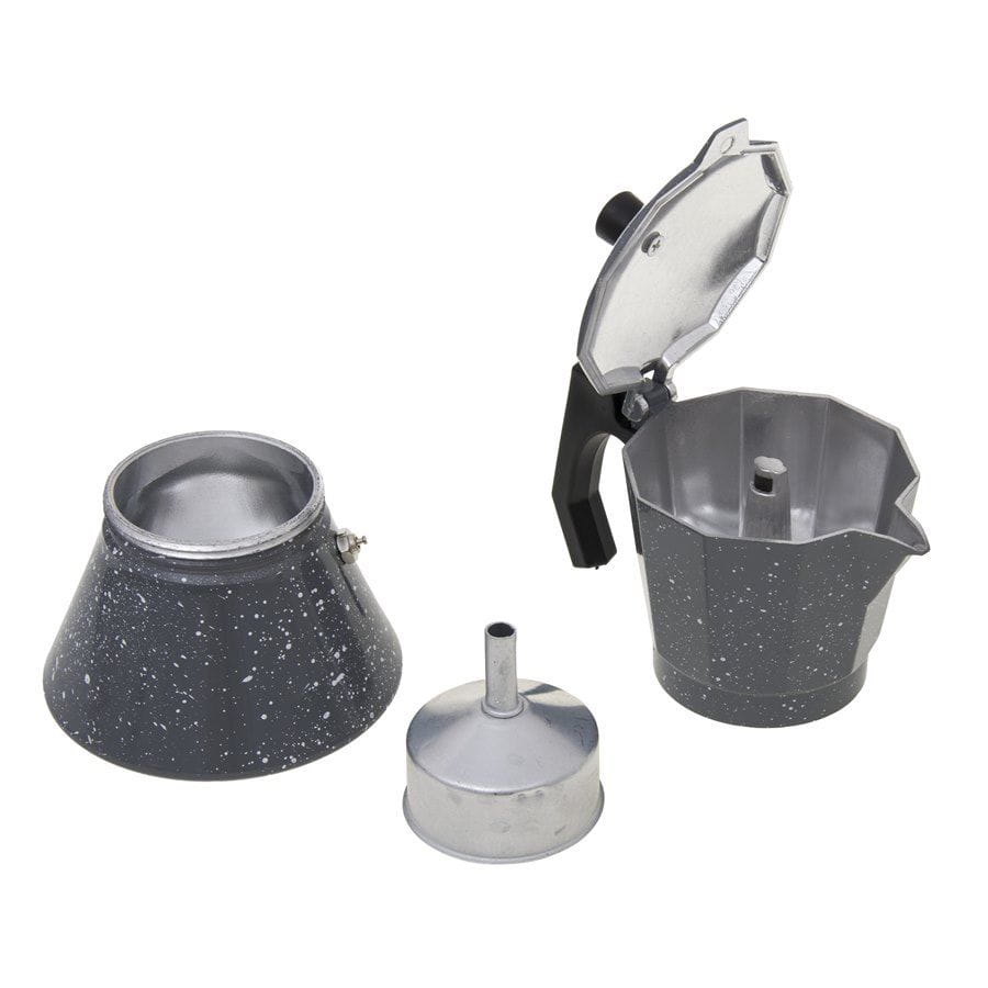 - korpus kawiarki został wykonany z wysokiej jakości aluminium, rączka i uchwyt pokrywy z tworzywa sztucznego, zaś płytka na spodzie ze stali nierdzewnej