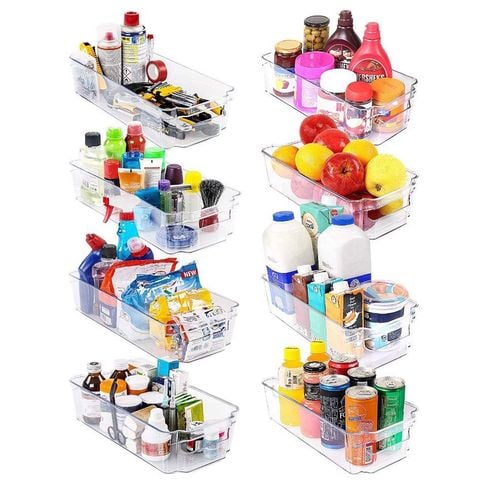 KICHLY Organizer do lodówki zestaw 8 pojemników. Towar powystawowy, outletowy, stoki magazynowe, sporadycznie używanych. Urządzenia mogą posiadać opakowania zastępcze lub oryginalne. Przedstawione zdjęcia są poglądowe. KICHLY zestaw 8 przezroczystych pojemników premium do przechowywania żywności 4 pojemniki duże 36,8 x 17,8 x 9,9 cm ?4 pojemniki małe31,5 x 15,7 x 8,9 cm do kuchni, do spiżarni, do szafek, na szafki, na blaty, nie zawiera BPA. Dzięki naszemu prostemu, ale niezbędnemu rozwiązaniu do przechowywania, możesz z łatwością zmaksymalizować przestrzeń i natychmiast przekształcić zabałaganioną lodówkę lub spiżarnię w uporządkowany i uporządkowany schowek. Nasz schowek w lodówce jest idealny do wykorzystania martwej przestrzeni w lodówce podczas organizowania małych przedmiotów, które mogą pomóc w uzyskaniu więcej miejsca. Te plastikowe pojemniki do przechowywania bez BPA są idealne do przechowywania napojów w puszkach, owoców, warzyw, mięsa, mrożonek, dzięki czemu zawartość jest widoczna i łatwa do zlokalizowania. Konstrukcja pojemnika z otwartą górą umożliwia natychmiastowy wybór potrzebnego produktu. Zintegrowane uchwyty są uformowane tak, aby pasowały do ??dłoni, dzięki czemu możesz wyjąć przekąskę z lodówki lub spiżarni. Podobnie możesz wysunąć szufladę, aby dotrzeć do przedmiotów przechowywanych z tyłu półek i opuścić ją w celu uzupełnienia zapasów. KICHLY Organizer do lodówki – zestaw 8 pojemników kuchennych (4 duże, 4 małe). 5791