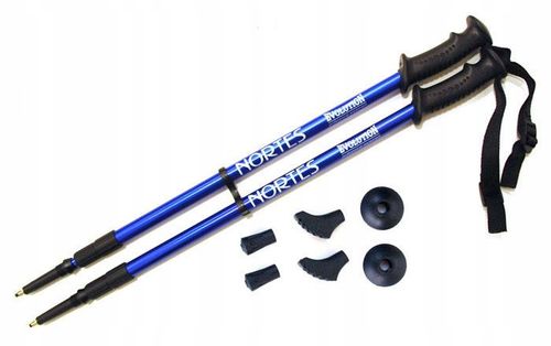 ✔️ Teleskopowa budowa umożliwiająca łatwą regulację długości oraz wymienne nakładki i talerzyki pozwalające na używanie kijów na różnych nawierzchniach.