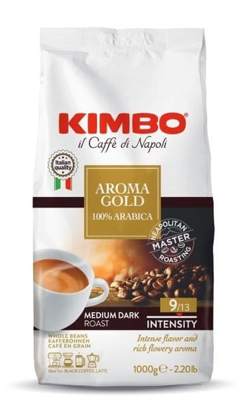 Kimbo Aroma Gold została okrzyknięta jedną z najlepszych kaw na włoskim rynku. Nie bez przyczyny mówi się o niej jako o “espresso w mistrzowskim wydaniu”. Ten starannie wyselekcjonowany blend gatunku Arabika (100%) to niezwykle aromatyczna uczta dla zmysłów. Jak na wysokiej jakości Arabikę przystało Kimbo Aroma Gold posiada intensywny zapach, w którym wyróżnić możemy cytrusowe akcenty. Średni stopień wypalenia ziaren uwydatnił najcenniejsze kawowe wartości, minimalizując przy tym nadmiar goryczki.