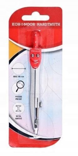 Cyrkiel szkolny, przeznaczony do kreślenia okręgów o średnicy do 340 mm. Wyposażony jest w grafit o średnicy 2 mm.