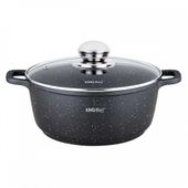 Odlewany niski garnek żaroodporny z powłoką marmurkową, umożliwiającą zdrowe gotowanie.