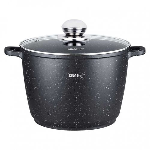 Odlewany wysoki garnek żaroodporny z powłoką marmurkową, umożliwiającą zdrowe gotowanie.