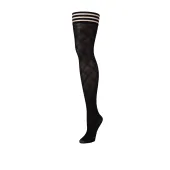 Kixies Tiffany C to stylowe, czarne pończochy samonośne o połprzezroczystej strukturze, ktore wyrożniają się eleganckim, geometrycznym wzorem w diamenty na całej długości. Model łączy klasyczną estetykę z nowoczesną funkcjonalnością, stanowiąc idealny wybor zarowno do codziennych, jak i wieczorowych stylizacji.