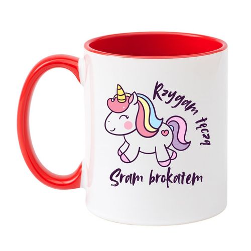 Kubek „Rzygam tęczą, sram brokatem” to najlepszy sposób na dodanie odrobiny szaleństwa do każdego dnia. Zamów teraz i ciesz się niepowtarzalnym kubkiem, który z pewnością przyciągnie uwagę!