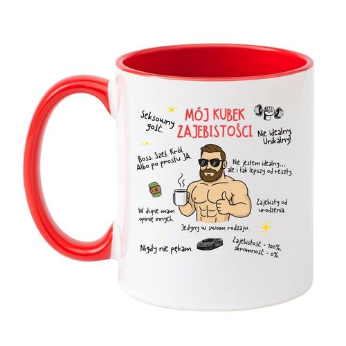 Jeśli szukasz chamskiego kubka z zabawnym napisem, który wali prosto z mostu i nie potrzebuje cenzury – trafiłeś w dziesiątkę. Ten kubek dla prawdziwego kozaka, co nie pęka, nie przeprasza i nie potrzebuje aprobaty, to prezent, który mówi wszystko za Ciebie. Śmieszne kubki dla faceta z jajami nigdy nie były tak trafne – to nie tylko ceramika, to deklaracja stylu życia: “Zajebistość 100%, skromność 0%”.