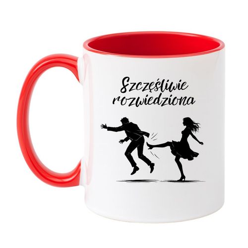 Kubek Szczęśliwie rozwiedziona to humorystyczny kubek dla rozwiedzionej kobiety, który symbolizuje nowy etap życia, niezależność oraz dystans do zakończonego małżeństwa.