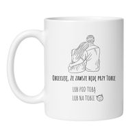 Kubek "Obiecuję, że zawsze będę przy tobie, lub pod tobą, lub na tobie" to idealny wybór dla osób, które potrafią obiecać wszystko, ale z przymrużeniem oka. Zabawny, dwuznaczny napis, który rozbawi każdego, kto lubi humor w relacjach. Jeśli szukasz prezentu, który będzie zarówno śmieszny, jak i z lekką dozą szaleństwa, ten kubek jest stworzony dla Ciebie!
