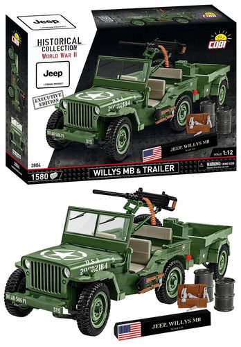 Najpopularniejszy na świecie samochód terenowy wraz z przyczepą został starannie zaprojektowany z klocków konstrukcyjnych COBI i składa się z 1580 elementów. Po zbudowaniu razem z przyczepą ma aż 45 cm długości! Specjalnie na potrzeby tego zestawu powstały zupełnie nowe elementy ze szczegółami oddające wygląd historycznego samochodu. Ogromny klockowy Willys MB posiada charakterystyczny grill o maskę, realistyczne skrętne koła, działającą kierownicę, detale wnętrza i odwzorowany silnik.