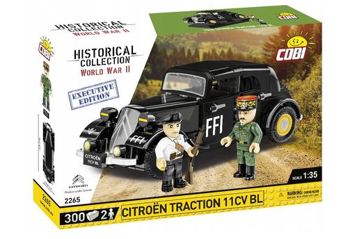 Samochód Citroen Traction 11CV BL został starannie odtworzony z klocków konstrukcyjnych COBI. Auto uzupełnia bogatą kolekcję historycznych pojazdów wydanych w modelarskiej skali 1:35.