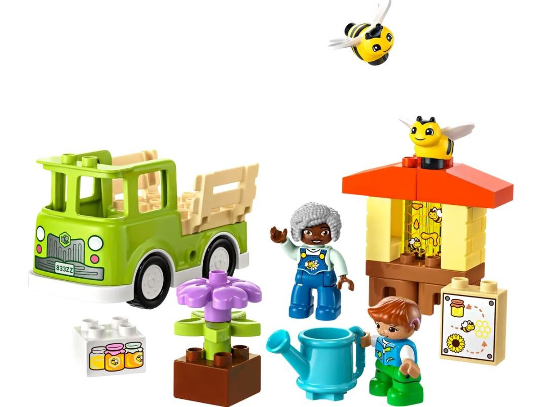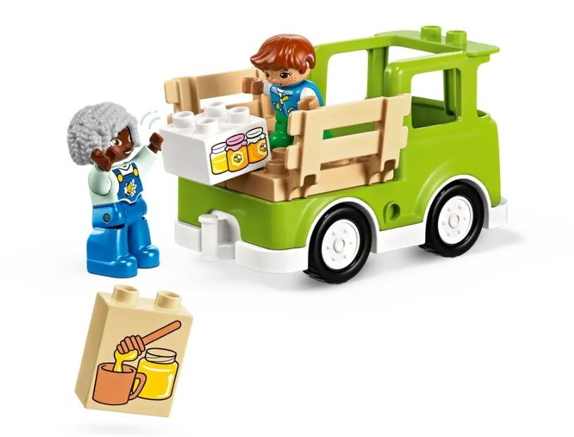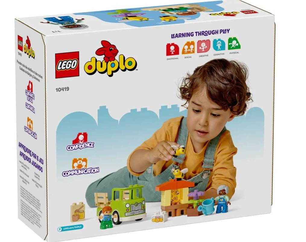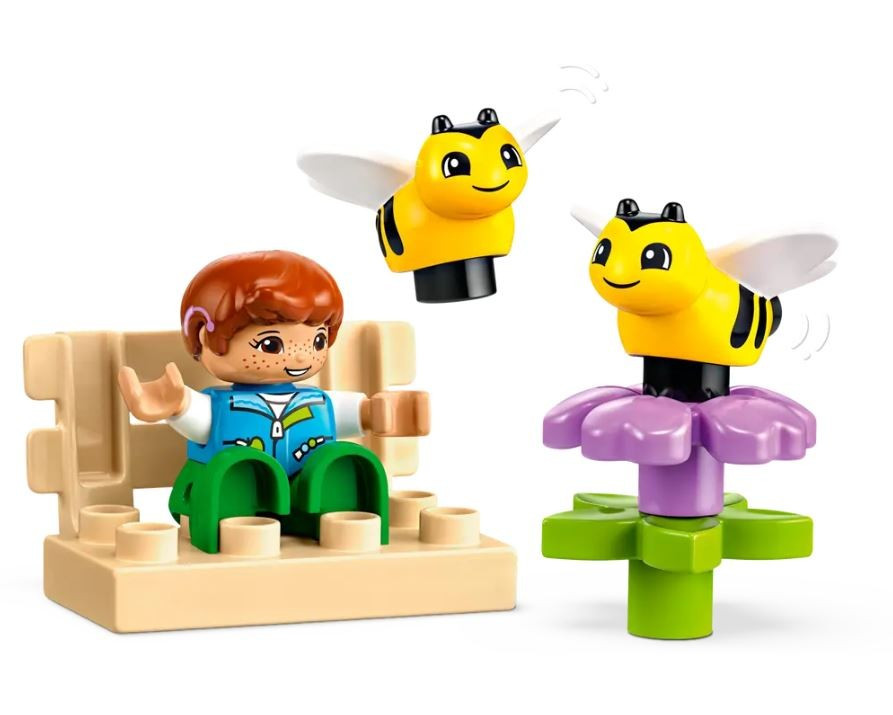 Maluchy rozwijają koordynację wzrokowo-ruchową, budując łodygi kwiatków, które dzięki temu rosną. Dzieci czeka wiele godzin zabawy w odgrywanie ról, kiedy będą sobie wyobrażać pszczółki zbierające nektar, a następnie wracające do ula, aby wyprodukować miód. W zestawie są też dwie figurki LEGO DUPLO. Przedszkolaki pomagają im zebrać miód, załadować go na zabawkową furgonetkę i zawieźć na rynek.