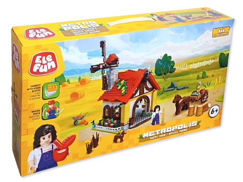 Klocki Elefun Metropolis - Wesoła farma 12108, to klocki które zapewnią dziecku wiele godzin wspaniałej zabawy, a dodatkowo wpłyną pozytywnie na kreatywność, wyobraźnię i rozwój zdolności manualnych. Klocki są kompatybilne z innymi markowymi klockami. W zestawie: Domek z wiatrakiem, konik z przyczepką, separator klocków, 3 figurki, papierowa obrazkowa instrukcja składania oraz zestaw naklejek do oklejenia klocków.