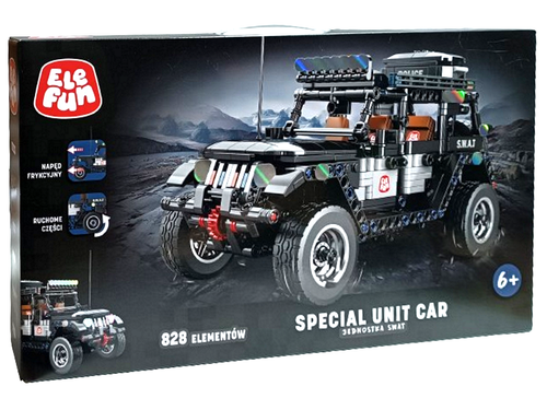 Klocki Elefun Special Unit Car - Jednostka SWAT 8815, to klocki które zapewnią dziecku wiele godzin wspaniałej zabawy, a dodatkowo wpłyną pozytywnie na kreatywność, wyobraźnię i rozwój zdolności manualnych. Klocki są kompatybilne z innymi markowymi klockami. W skład zestawu wchodzi moduł silnika zapewniający autu napęd frykcyjny, wystarczy ruszyć autem do tyłu i je puścić a auto samo zacznie się poruszać do przodu.