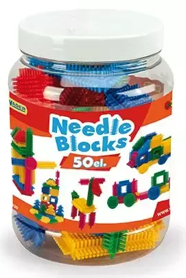 Zestaw zawiera 50 klocków z charakterystycznymi wypustkami, stąd nazwa – jeżyki. Klasyczna kolorystyka i oryginalny kształt wspierają rozwój sensoryczny, ponieważ taka budowa klocków stymuluje zmysł dotyku dziecka. Różnorodność kształtów i kolorów stwarza nieograniczone możliwości tworzenia rozmaitych konstrukcji, przedmiotów, figur czy elementów przyrody. Przy ich pomocy dziecko buduje swoją własną rzeczywistość wykorzystując nieograniczoną wyobraźnię. Precyzyjne wykonanie oraz system montażu ułatwia wzajemne łączenie elementów. Zabawka wykonana z wysokiej jakości, bezpiecznego i nietoksycznego tworzywa. Zestaw zapakowany jest w praktyczny słoik, który ułatwi przechowywanie klocków.