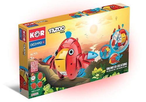 Zwierzątka Kor Tazoo przybyły na Ziemię w wyniku magnetycznej burzy. Przyjęły one fantazyjne kształty i zamieszkały w lasach oraz morzach. Seria Geomag Kor Tazoo opiera się na promienistym układaniu klocków wokół promienistej kuli. W ten sposób powstaje rdzeń, za pomocą którego można tworzyć nieograniczoną ilość fantastycznych kształtów. |