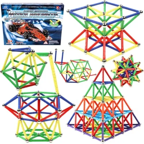 Zestaw nie tylko rozwija kreatywność, cierpliwość i skupienie, ale także uczy dzieci jak łączenie magnetycznych pałeczek z kulkami tworzy trójwymiarowe obiekty i przedmioty. To nauka poprzez zabawę w najlepszym wydaniu!