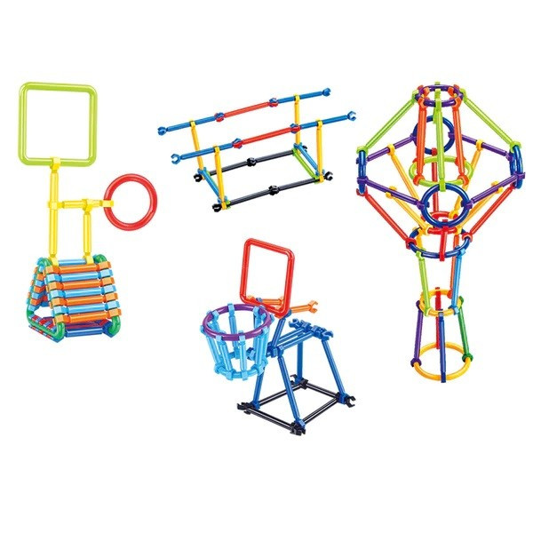 Aż 869 elementów w 10 kolorach pozwala stworzyć fantastyczne figury takich jak kosz, huśtawka, samolot, motor czy samochód.