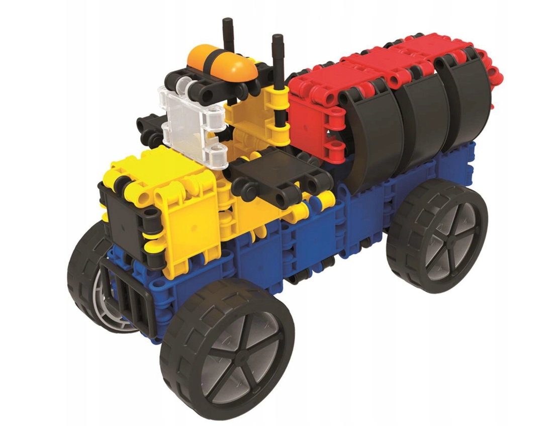 Clics to zestawy kolorowych i edukacyjnych klocków, które tworzą różne konstrukcje. W prosty i łatwy sposób można je łączyć, co daje możliwość budowy zarówno płaskich jak i przestrzennych konstrukcji. W odróżnieniu od tradycyjnych klocków, przy klockach CLICS zabawa polega na połączeniu klocków „zawiasami”, czyli krawędziami elementów. Taki sposób łączenia daje możliwość wykonania płaszczyzny. Z klockami Clics baw się i rozwijaj swoją wyobraźnię! Kolorowe klocki konstrukcyjne Clics rozwijają wyobraźnię dzieci i zapewniają wiele godzin zabawy. Można tworzyć z nich płaskie, jak i przestrzenne konstrukcje, jedynym ograniczeniem jest wyobraźnia budowniczego! Prosty i unikalny sposób łączenia, daje możliwość budowy zarówno płaskich jak i przestrzennych konstrukcji. Klocki są bezpieczne dla dzieci i wytrzymałe, dzięki czemu nadają się do długotrwałego użytkowania. Zestaw zawiera: • 328 klocków CLICS Rollerbox, • 122 akcesoria, • naklejki, • plany budowy. Wymiary opakowania 40.0 x 29.0 x 35.0 cm
