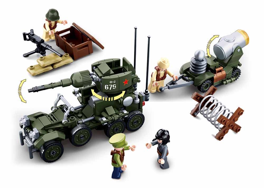KLOCKI SLUBAN WWII Pojazd wojskowy działo 4w1 to niezwykle emocjonujący zestaw konstrukcyjny, który przeniesie Twoje dziecko w czasy II wojny światowej! Stworzony dla małych entuzjastów militarnych zabaw i konstrukcji, ten zestaw klocków pozwoli na rozwijanie wyobraźni oraz umiejętności manualnych. Zestaw składa się z 332 elementów, dzięki czemu Twoje dziecko może stworzyć wspaniały pojazd wojskowy z działem oraz aż cztery ludziki, które dodadzą realizmu każdej zabawie.