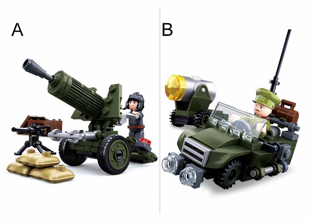 Nie przegap okazji, aby podarować swojemu dziecku zestaw, który nie tylko bawi, ale także uczy! KLOCKI SLUBAN WWII Pojazd wojskowy działo 4w1 to doskonały wybór jako prezent urodzinowy lub świąteczny, który z pewnością dostarczy radości i godziny świetnej zabawy. Utwórz swoje militarystyczne imperium już dziś i wprowadź swoją pociechę w fascynujący świat konstrukcji i wyzwań!
