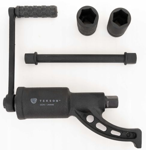 Żeby bez przeszkód korzystać z klucza wystarczy zamontować kolbę oraz nasadkę i przyłożyć klucz do koła.