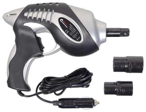 Wkrętarka udarowa z wtyczką do gniazda zapalniczki samochodowej 12 V przeznaczona jest do odkręcania i dokręcania nakrętek lub śrub kół. Jest dostarczany w zamykanej plastikowej obudowie i zawiera wymienne nasadki ze stali chromowo-wanadowej. Długi kabel pozwala na wygodne dokręcenie wszystkich kół pojazdu.