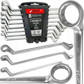 Zestaw składa się z 8 par kluczy oczkowo-odgiętych o rozmiarach od 6 do 22 mm, co pozwala na komfortową pracę przy różnorodnych projektach. Wszystkie klucze zostały precyzyjnie wykalibrowane i zapakowane w wytrzymałe, plastikowe etui ze wzmocnionym uchwytem do powieszenia.