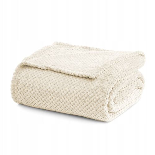 ✔️ Elegancka, kremowa kolorystyka oraz pikowany wzór, nadający kocowi ponadczasowej estetyki.