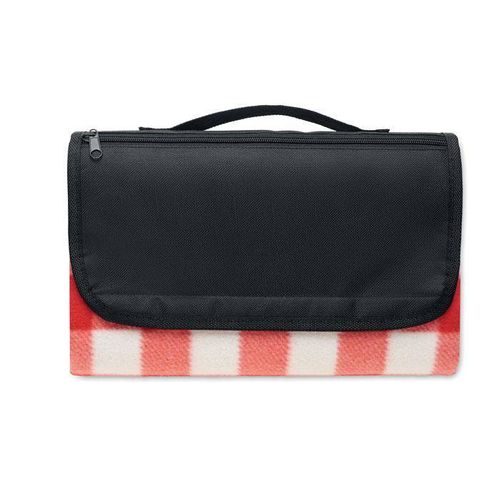Składany koc piknikowy z polaru RPET 150 gr/m² z wodoodporną powłoką PEVA na jednej stronie.