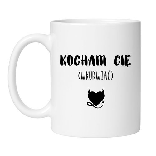 Kubek „KOCHAM CIĘ (WKURWIAĆ)” to idealny wybór dla tych, którzy potrafią połączyć miłość z odrobiną złośliwego humoru. Jeśli wiesz, że czasem miłość oznacza również drobne, zabawne irytacje, ten kubek będzie doskonałym przypomnieniem o tym, jak z miłością można delikatnie „dokuczać”.